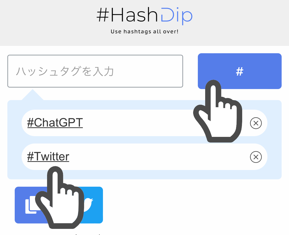 入力したハッシュタグはそのままTwitterに投稿できます。また、コピーボタンでクリップボードにコピーできるのでInstagramやTikTokへ簡単に入力できます