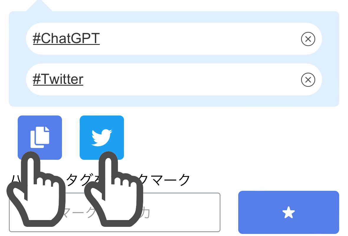 入力したハッシュタグはそのままTwitterに投稿できます。また、コピーボタンでクリップボードにコピーできるのでInstagramやTikTokへ簡単に入力できます